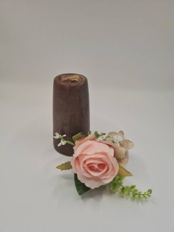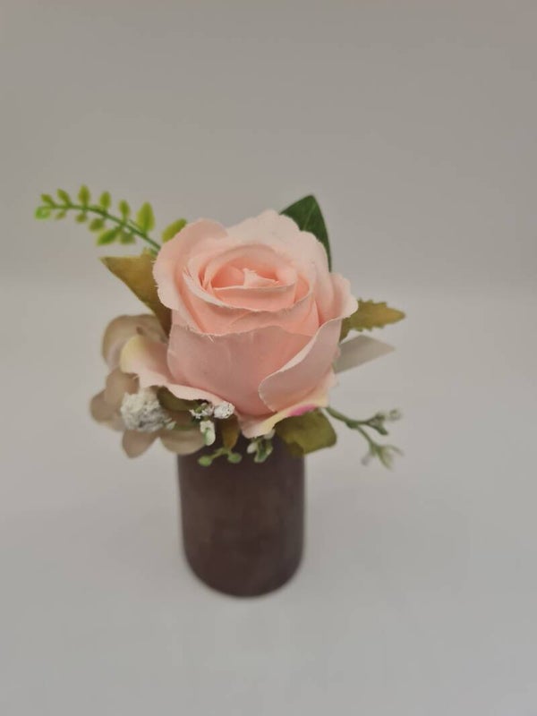 afmetingen: Totaal inclusief roos 16 cm. hoogte vaasje 10 cm diagonaal vaasje 4 cm.