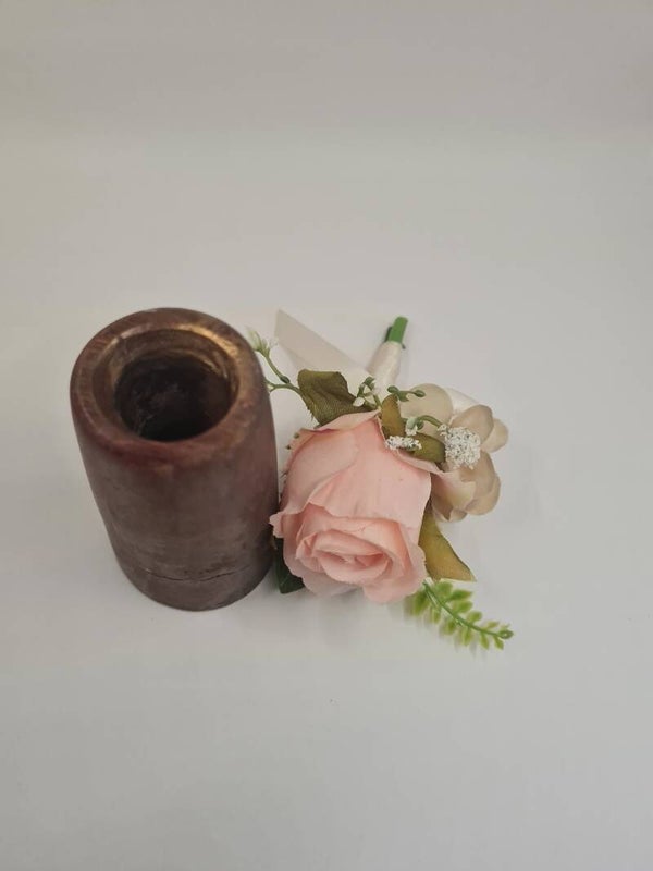 Het vaasje is gedraaid uit een stukje hardhout, dat gebruikt wordt in bruggen in parken. Volgens de bruggenmaker is het hout gecertificeerd.