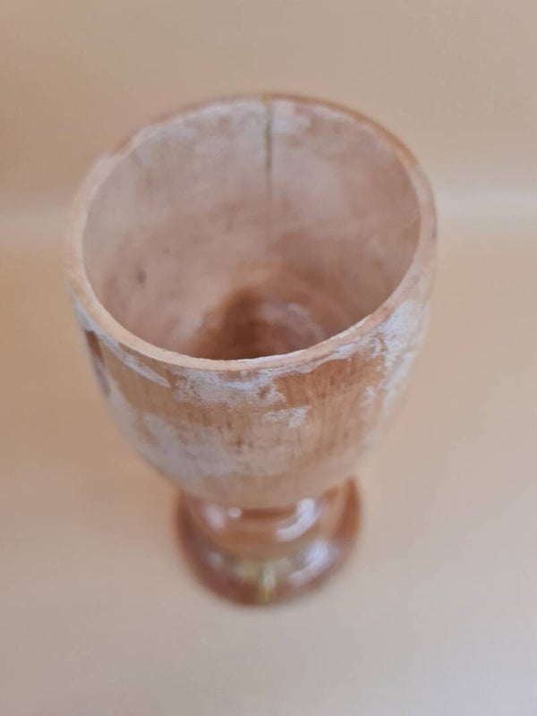 De kelk is gedraaid uit een dikke tak van een wilg. Afwerking bestaat uit polijsten, vernissen en in de was zetten.