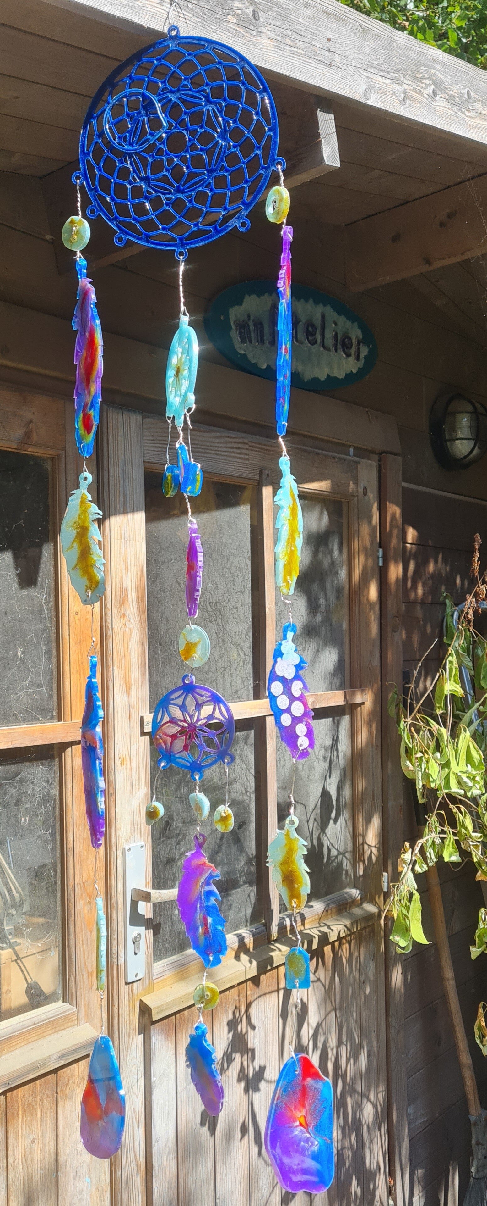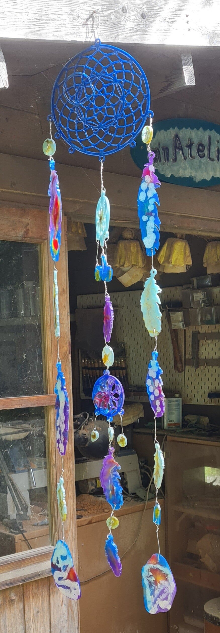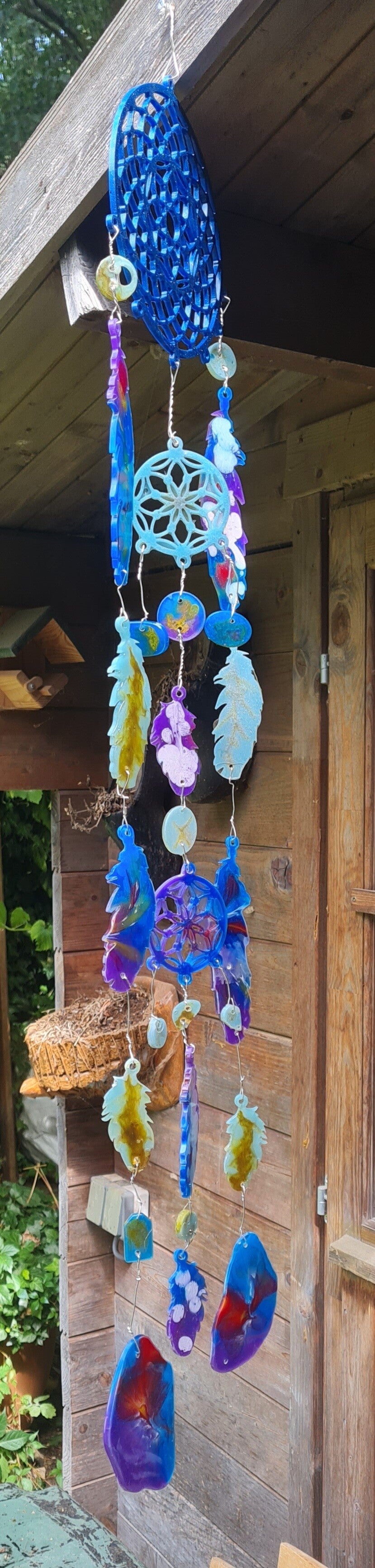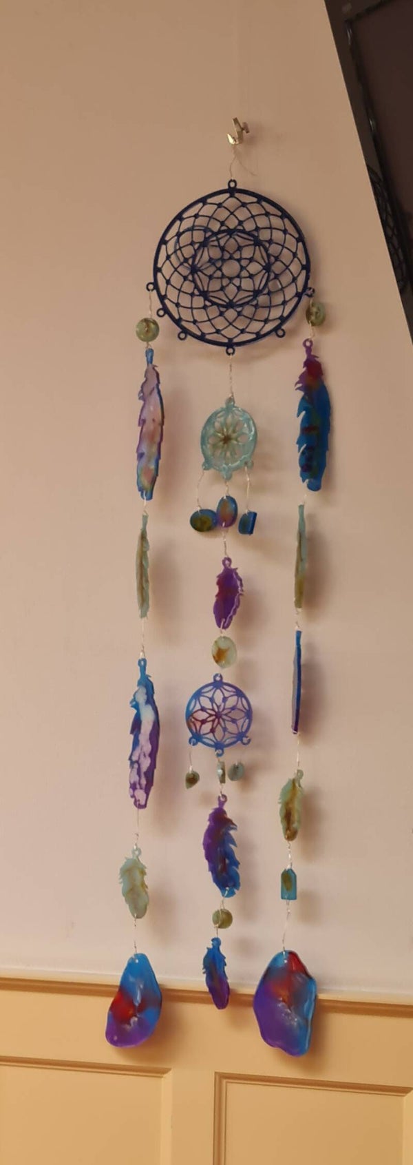 Groot mobile, gemaakt van epoxy, geschakeld met zilverdraad