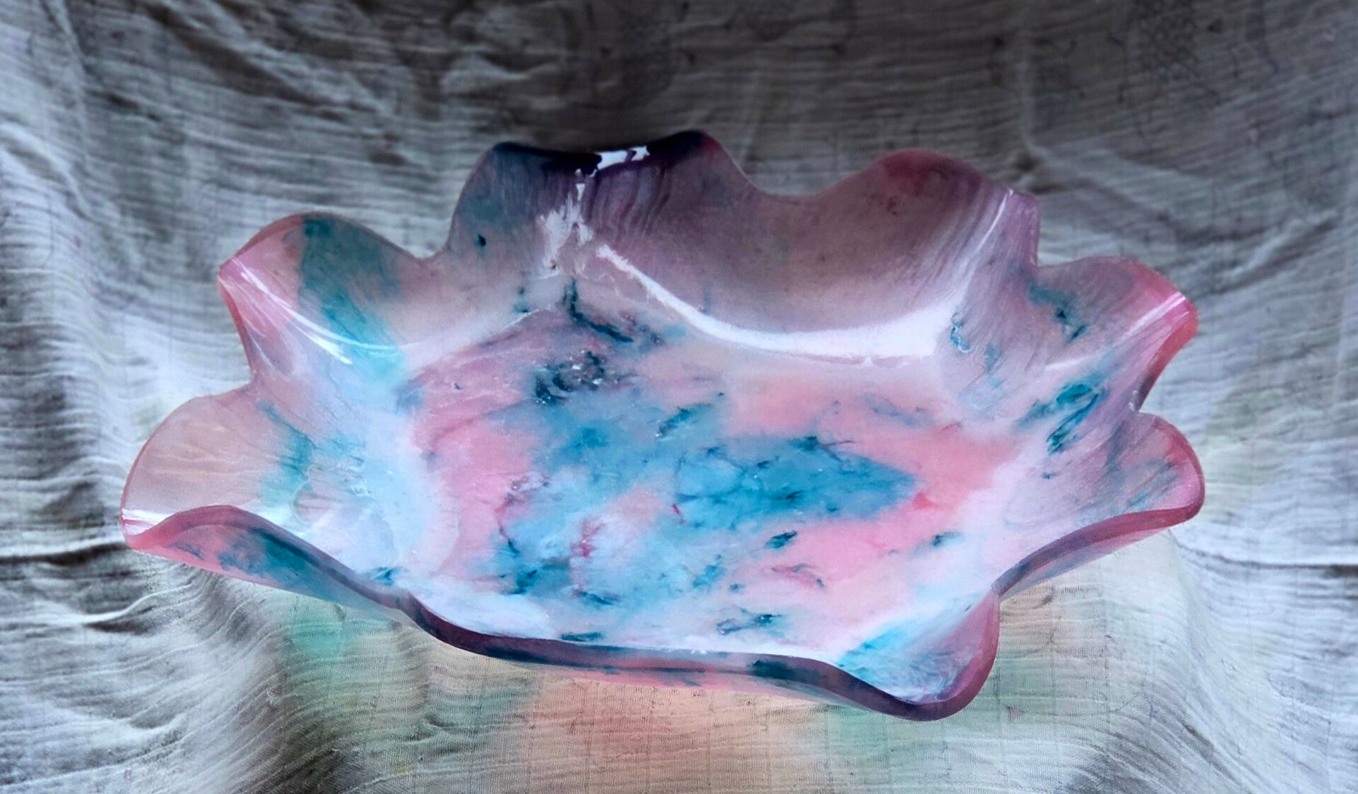 Dit is een grote schaal gemaakt van roze en turquoise epoxy