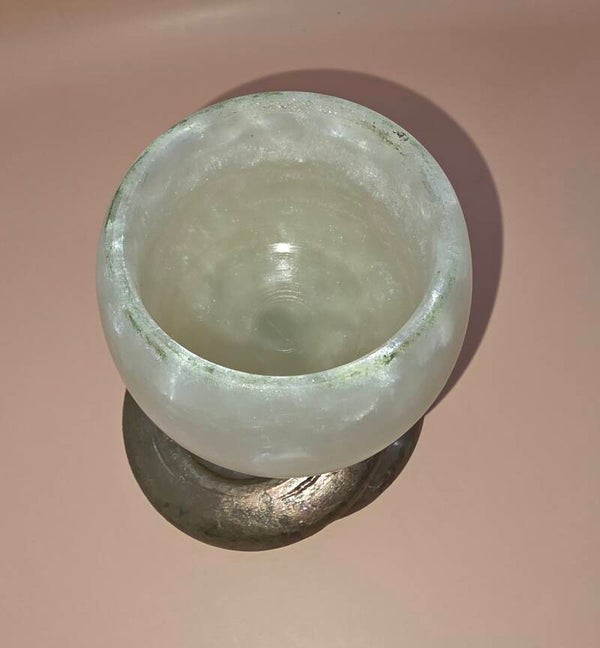 afmetingen: hoogte 9,5 cm, diagonaal 6 cm, diepte bokaal 5 cm