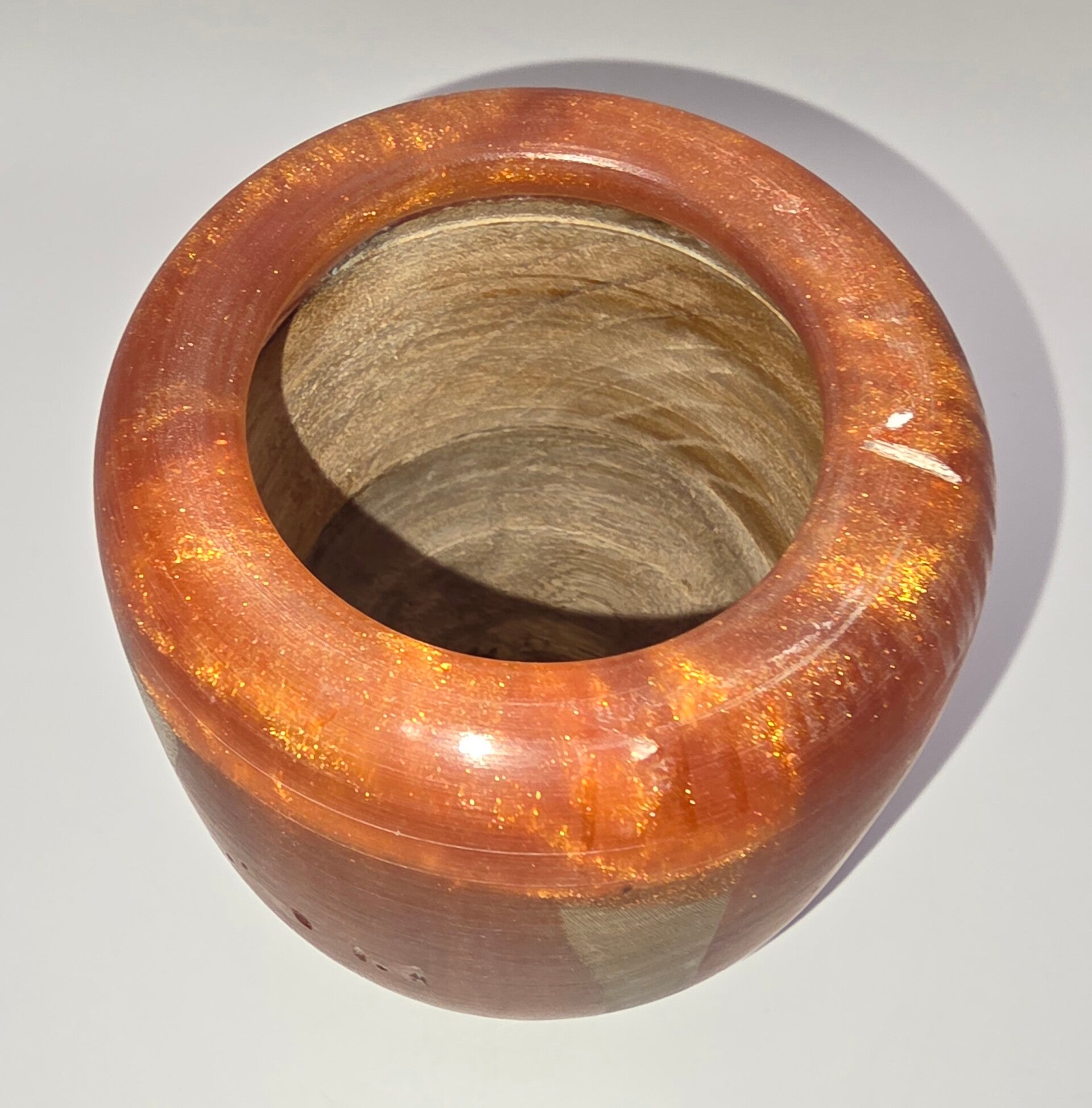 Vaas van eikenhout en oranje/gouden epoxy